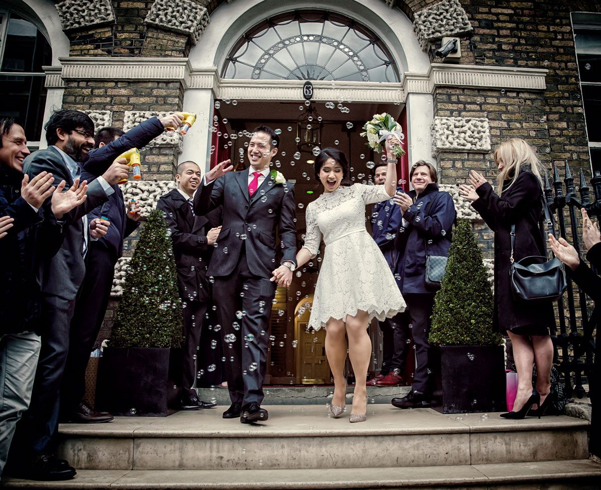 As London wedding photographers we have seen confetti thrown inside and outside of buildings, day times and evenings, and even as a couple emerged from a hotel lift, as there were restrictions on throwing anything outside of the premises. In fact many churches in the United Kingdom now ask that couples either do not throw confetti at all, or do so on council controlled land just past their boundaries. The reason being, quite simply they want the borough council to clean it up and not themselves. Smart! Many establishments also require that if confetti is to be thrown that it be in a biodegradable form, the most usual of these being freeze dried flower petals.